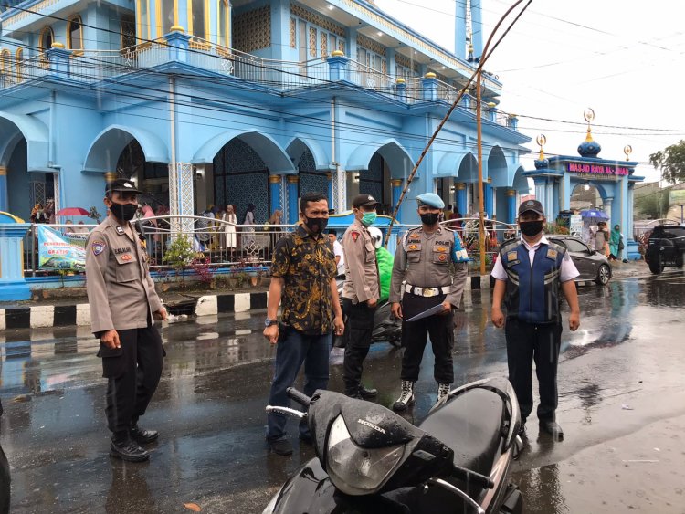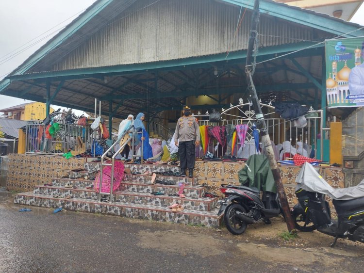 Sibolga, Pijar Tapanuli - Personil Polres Sibolga gelar pengamanan jalannya Sholat Idul Fitri 1443 H/ 2022 M di mesjid-mesjid di kota Sibolga, Senin pagi (02/05).