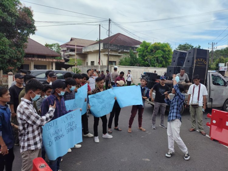 Setelah melakuka orasi secara bergantian Adi membacakan tuntutan aksi yang berisi : Sehubungan dengan ini kami sampaikan terkait adanya dugaan korupsi, kolusi, dan nepotisme dalam penggunaan angaran di Dinas Perindustrian Dan Perdagangan Kota Sibolga T.A 2022-2023 yaitu: Penggunaaan anggaran TA 2022 untuk Urusan Pemerintahan Bidang Perindustrian dengan total anggaran Rp.14.369.381.149.00 yang diplot pada kode rekening 3.31.3.31.3.30.0.