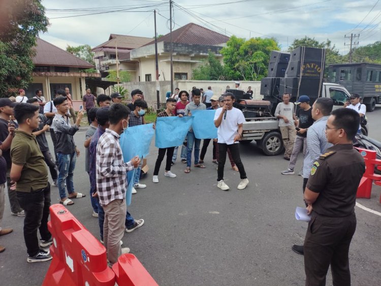 Kasi intel Kejaksaan Negeri Sibolga, Dedi Saragih, SH, MH saat menerima para pengunjuk rasa didepan kantor kejari Sibolga mengapresiasi para mahasiswa yangmenyampaikan pendapat dengan baik dan santun.