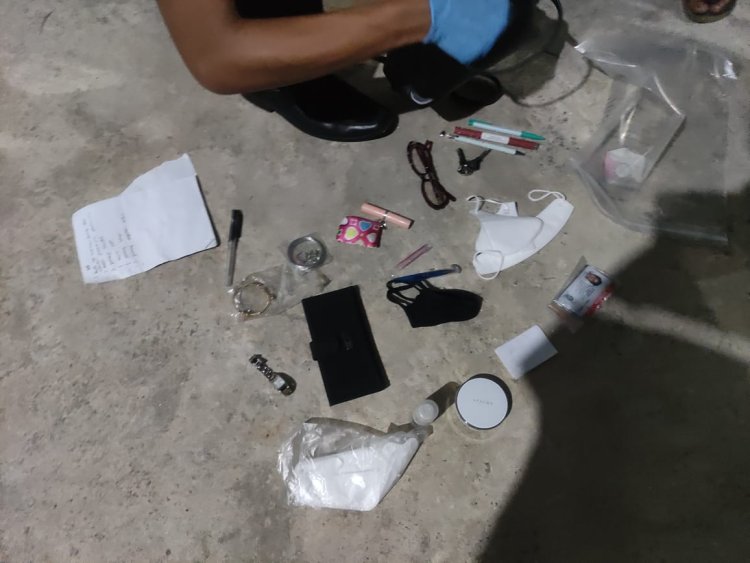 Lanjut dia, Barang Bukti yang ditemukan di lokasi mayat yang ditemukan Uang 2000 : 23 lembar, Uang 50.000 : 8 lembar, Uang 5.000 : 1 lembar, Uang 1.000 : 1 lembar, Uang logam 1.000 : 1 biji, Cincin sama batu : 1 biji, Kalung polos : 1 biji, Lipstik : 1 biji, Pulpen : 1 biji, Liontin tulisan Cina, kerabu dan anting-anting : 1 biji, Bedak muka merek azzura : 1 biji, Kerabu perak : 1 Pasang, Gelang perak : 4 Pasang, Masker putih : 3 buah, Masker kain : 1 buah, Gelang asesoris : 1 pasang, SIM C, SIM A dan Kartu ATM, Senetezer 1 botol, Jam tangan : 1 buah, Kaca mata warna merah : 1 buah, Kunci rumah : 3 biji, Tisu kecil 1 bungkus, Foto copi KTP, dan adanya Serpihan asbes bekas.