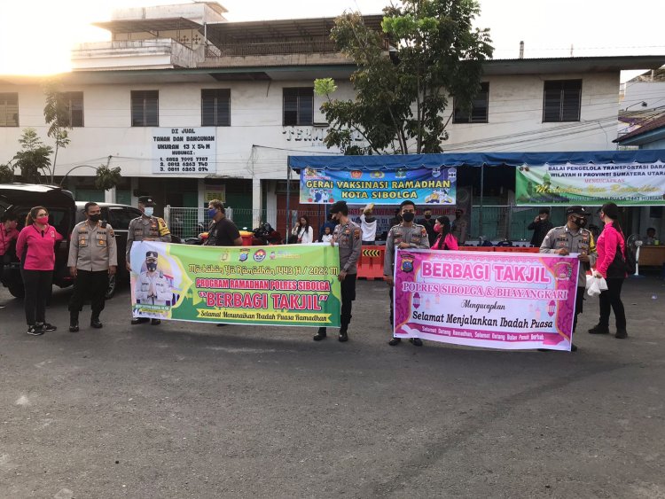 Lanjut Kapolres, Ada 100 paket takjil yang dibagikan untuk masyarakat yang melaksanakan ibadah puasa Ramadhan 1443 H di wilayah hukum Polres Sibolga,