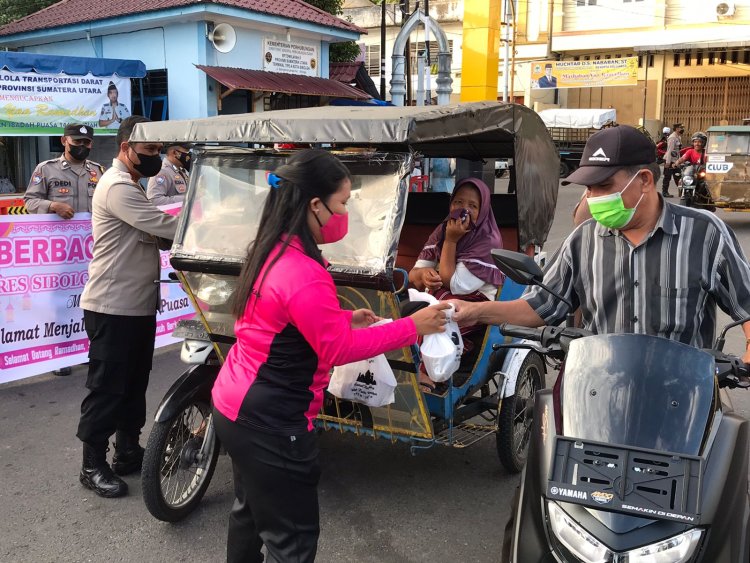 KAPOLRES Sibolga Dan Ibu Bhayangkari Bagikan 100 paket Takjil : Patuhi Prokes!