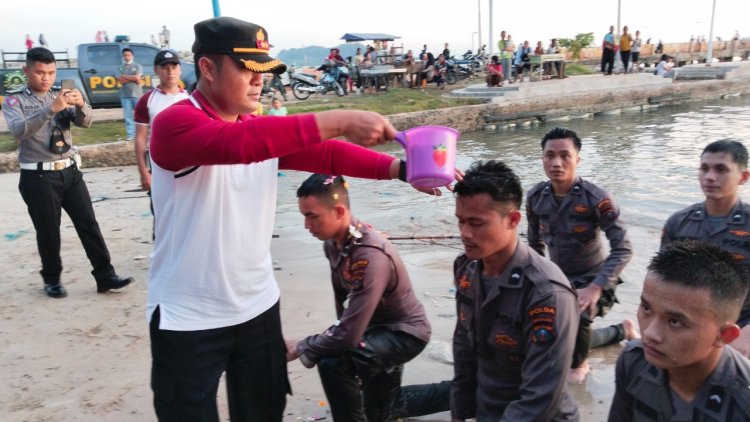 Apel yang dipimpin Kapolres Sibolga AKBP Taryono Raharja,SH,SIK dengan Komandan apel Kanit Tipikor Sat Reskrim Ipda Pasma Pasaribu,SE,MM diawali chek suhu pada Bintara Remaja kemudian giat pemanasan diri personil selanjutnya berjalan dan berlari diwilayah hukum Polres Sibolga dengan pengenalan terhadap kantor kantor instansi yang ada di wilayah hukum Polres Sibolga dan diakhiri dengan penyiraman air kembang di pelabuhan lama Sibolga yang dimulai dari Kapolres Sibolga dan diikuti oleh PJU dan Perwira Polres Sibolga.