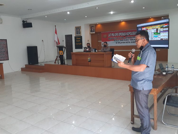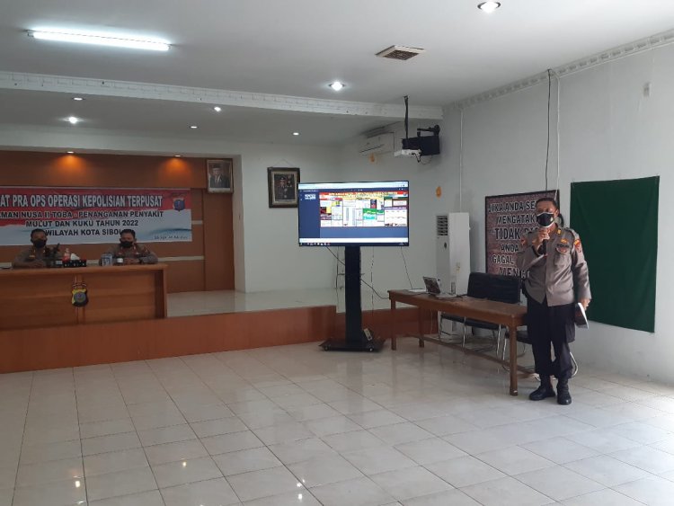 Kapolres Sibolga AKBP Taryono Raharja,SH,SIK dalam acara ini menyampaikan bahwa Lat Pra Ops Operasi Kepolisian Terpusat Aman Nusa II Toba - Penanganan Penyakit Mulut dan Kuku Tahun 2022 dengan Dasar Pelaksanaan Oprasi yaitu adanya STR dari Kapolda Sumut.