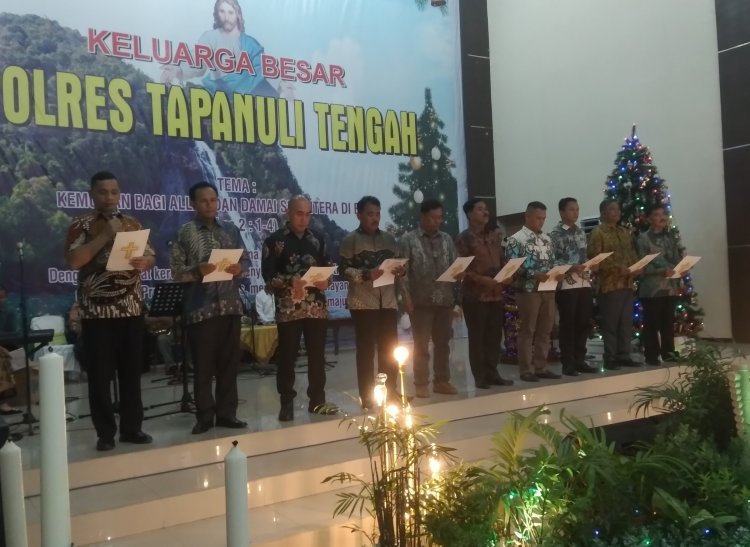 Pandan, Pijar Tapanuli - Keluarga besar Polres Tapanuli Tengah, jumat (5/12/2023) di Gedung Serba Guna Pandan, gelar perayaan Natal dengan thema : Kemuliaan Bagi Allah dan Damai Sejahtera Di Bumi, (lukas 2 :1-4) dengan sub thema : Dengan Semangat kerendahan hati menyambut kelahiran kristus melalui peran Polri Yang Presisi, berintegritas. Mengasihi dan melayani guna mewujudkan pemilu Damai menuju Indonesia Maju.