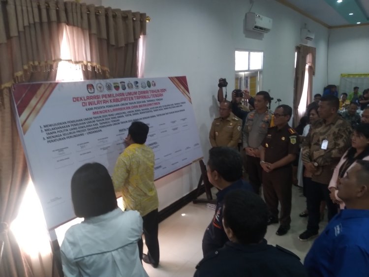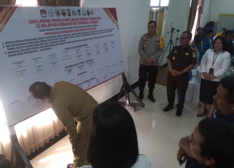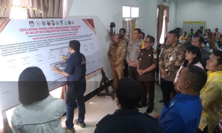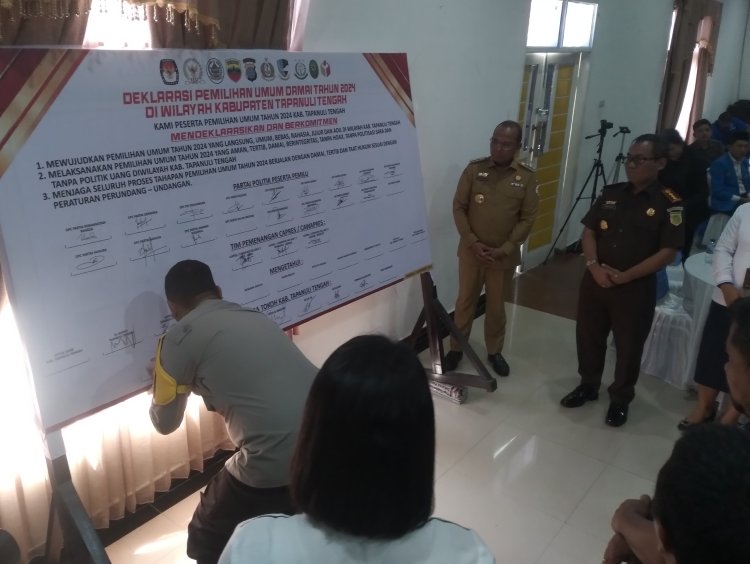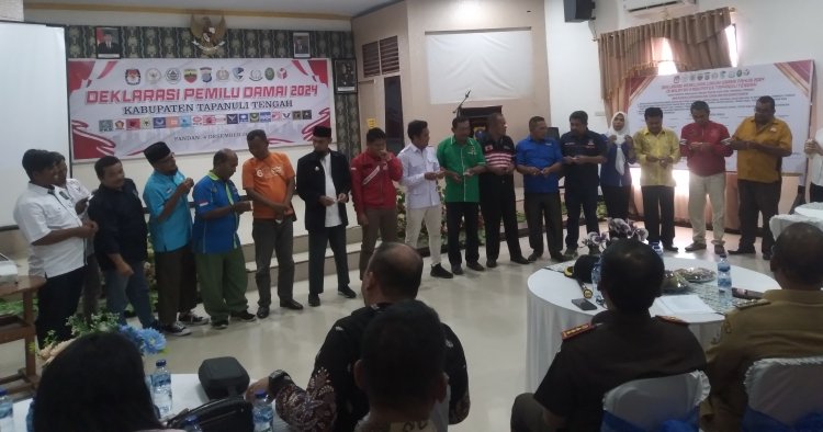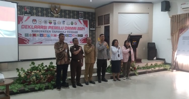 Deklarasi Pemilu damai yang digelar oleh Polres Tapteng, diikuti perwakilan dari 18 partai peserta pemilu di kabupaten Tapanuli tengah dihadiri penyelenggara Pemilu KPU Tapteng, BAWASLU Tapteng, juga hadir Pj Bupati Tapteng Sugeng R, Kapolres Tapteng AKBP Basa Emden Banjarnahor, SIK, M, Kajari Sibolga syaifful Alan, Ketua PN Sibolga Lenny Lasminar S, S.H., M, para tokoh masyarakat, tokoh agama dan ketua KNPI Tapteng
