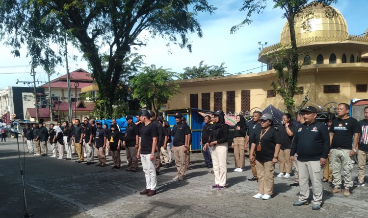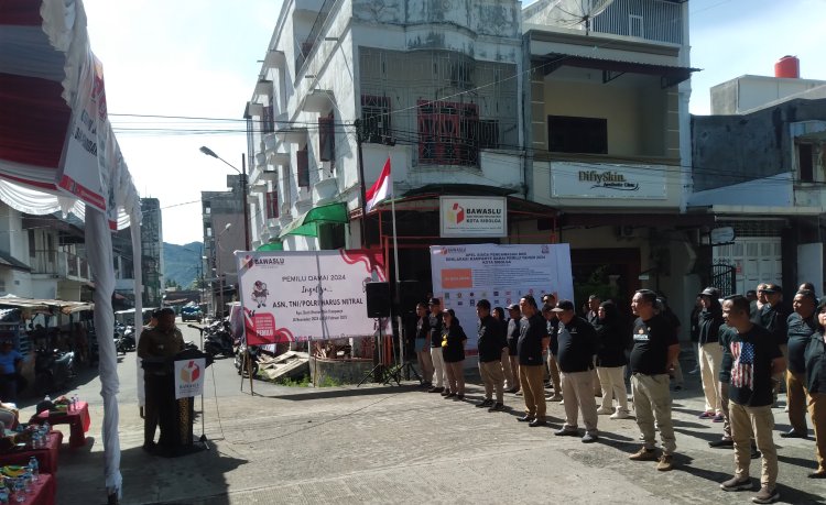 Sibolga, Pijar Tapanuli - Bawaslu(Badan Pengawas Pemilu) kota Sibolga Gelar Apel Siaga Pengawasan Dan Deklarasi Kampanye Damai Pemilu Tàhun 2024 Kota Sibolga, senin (4/12) Didepan kantor Bawaslu kota Sibolga, Jl.Diponegoro no.38 Pasar Belakang kota Sibolga.
