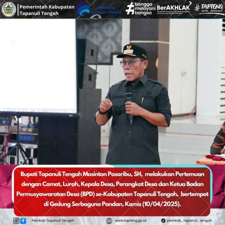 Penekanan ini disampaikan Bupati Tapanuli tengah saat melakukan Pertemuan dengan para Camat, Lurah, Kepala Desa, Perangkat Desa, Badan Permusyawaratan Desa (BPD) se-Kabupaten Tapanuli Tengah, kamis (10/4/2025) di Gedung Serbaguna Pandan.