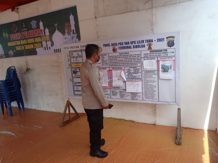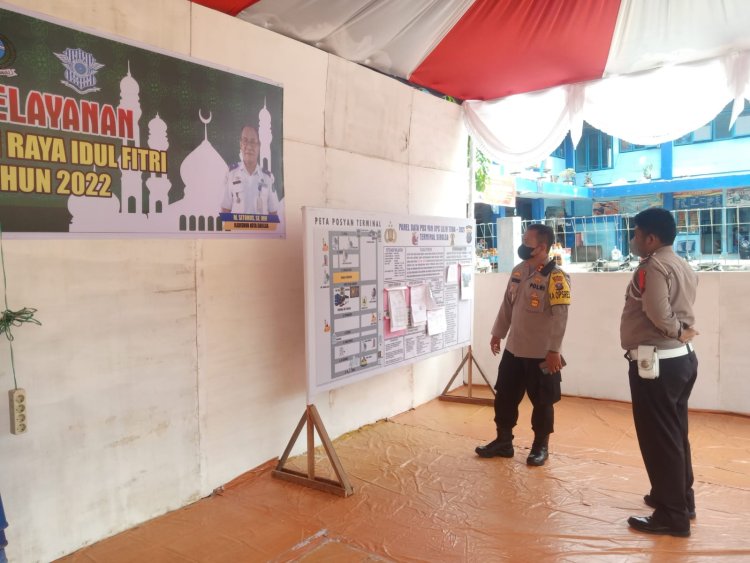 Sibolga, Pijar Tapanuli - Kapolres Sibolga AKBP Taryono Raharja,SH,SIK melakukan pengecekan Pos Pengamanan Operasi Ketupat Toba-2022, Selasa (26/04). Adapun lokasi Pengecekan Pos Pam Operasi Ketupat Toba- 2022 yaitu Pos Pam yang ada di terminal bus type A Sibolga.