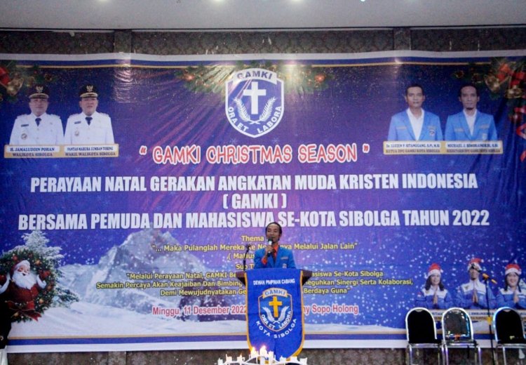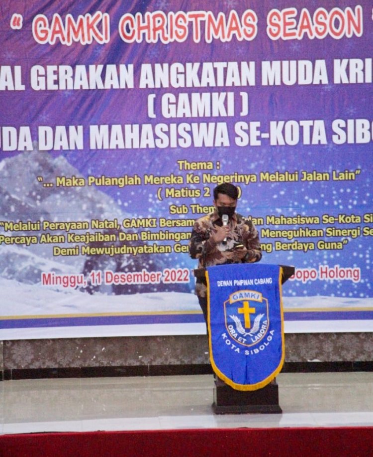 Mewakili Wali Kota Sibolga, Kadis Penanaman Modal dan Pelayanan Perizinan Satu Pintu (PMPPSP), Resdi Dorlince Sianturi, S.E., M.M., mengatakan bahwa Mahasiswa Harus Bisa Menjadi Berkat Bagi Sesama, pada kesempatan tersebut kadis perijinan menitipkan pesan Wali Kota Sibolga mengucapkan Selamat Hari Natal kepada seluruh umat Kristiani khususnya untuk Keluarga besar GAMKI, Pemuda dan mahasiswa se kota sibolga.