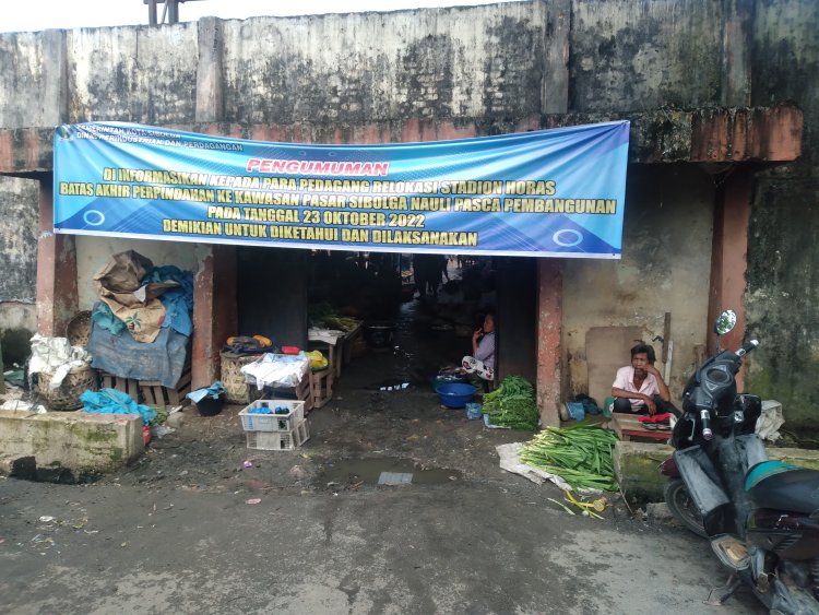 Amatan pijar Tapanuli dilokasi lama stadion horas sibolga, selasa (25/10) masih terlihat sebahagian pedagang yang masih menempati kios kios lama untuk berjualan, namun sebahagian lagi sudah dilakukan pembongkaran sendiri oleh para pedagang, bahkan terlihat para pembeli masih melakukan transaksi jual beli di pasar lama ini, sementara pemerintah telah membuat pengumuman berupa spanduk di pintu masuk pasar stadion horas Sibolga, berbunyi : Pengumuman! Diinformasikan kepada para pedagang Relokasi stadion Horas Batas akhir perpindahan ke kawasan pasar sibolga nauli pasca pembangunan pada tanggal 23 Oktober 2022, demikian untuk diketahui dan dilaksanakan.