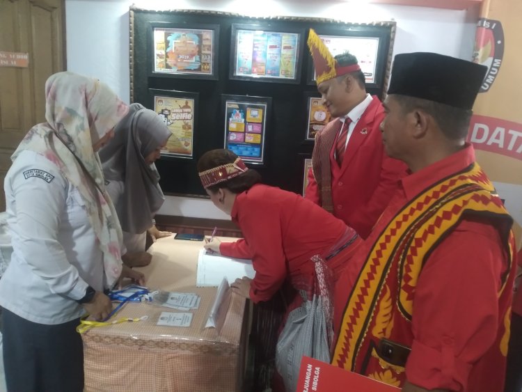 Ketua PDI Perjuangan kota Sibolga Memori Evaulina Panggabeansebelum penyerahan berkas menyampaikan bahwa kehadiran rombongan PDI Perjuangan kota Sibolga dirumah pintar KPU Sibolga membawa berkas berkas pendaftaran bakal calon legislatif dari PDI Perjuangan sesuai yang ditetapkan aturan, disertai rekomendasi DPP.