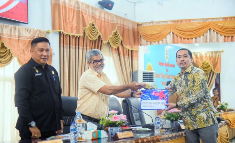 Pandan, Pijar Tapanuli - Pj Bupati Tapanuli Tengah Dr. Sugeng Riyanta, SH, MH diwakili Sekretaris Daerah Kabupaten (Sekdakab) Dr. Erwin Hotmansah Harahap, S.STP, MM, di Rapat Paripurna DPRD Kabupaten Tapteng sampaikan Rancangan Perubahan Kebijakan Umum Anggaran ( KUA) dan Rancangan Perubahan Prioritas Plafon Anggaran Sementara (PPAS) APBD Kabupaten Tapteng TA 2024 dirangkai dengan Penyampaian Ranperda Tentang Rencana Pembangunan Jangka Panjang Daerah Kabupaten Tapteng Tahun 2025-2045, selasa (20/8/2024) di Ruang Rapat Paripurna DPRD Tapteng, yang dipimpin Wakil Ketua DPRD Kabupaten Tapteng Agus Fitriadi Panggabean.