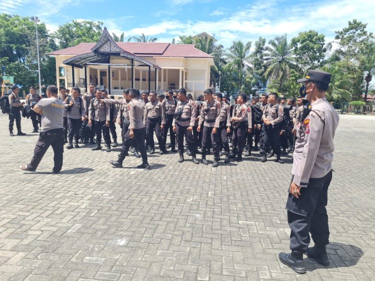 Sibolga, Pijar Tapanuli - Kapolres Sibolga AKBP Taryono Raharja,SH,SIK diwakili Kabag Ops AKP Asmon Bufitra,SH,MH memimpin apel konsolidasi personil BKO dari Pulau Nias untuk kembali ke kesatuan masing - masing kamis (7/7) dilapangan Simaremare, Sibolga.